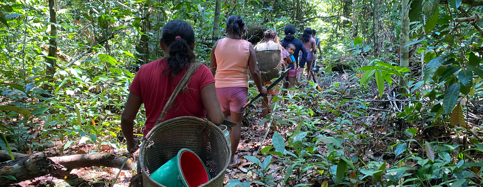 Nossa ideia inicial era acompanhar as mulheres da comunidade na caçada das formigas maniwara, um alimento tradicional, parte da cultura e do cotidiano local. Mas, desde o começo, a floresta já mostrava que aquele dia não seguiria o roteiro imaginado.
